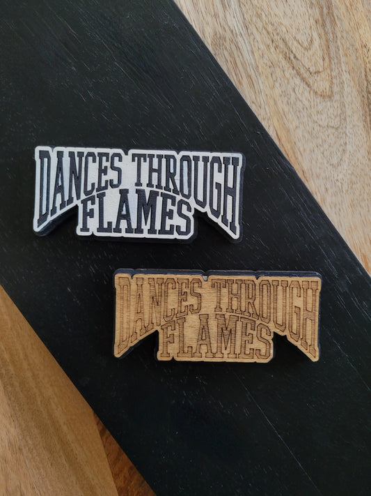 Dances Through Flames - Kühlschrankmagnet. Handgefertigt Nussbaumholz.
