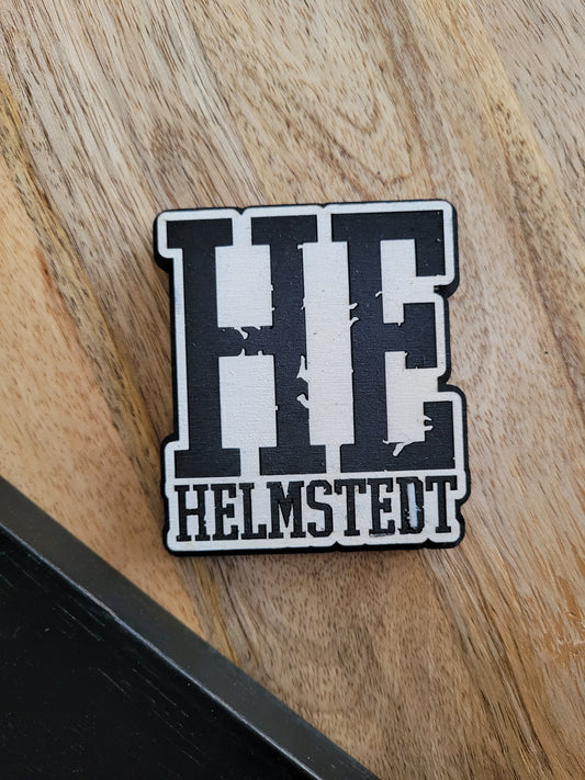 Helmstedt HE Kennzeichen Kühlschrankmagnet Handgefertigt Black and White